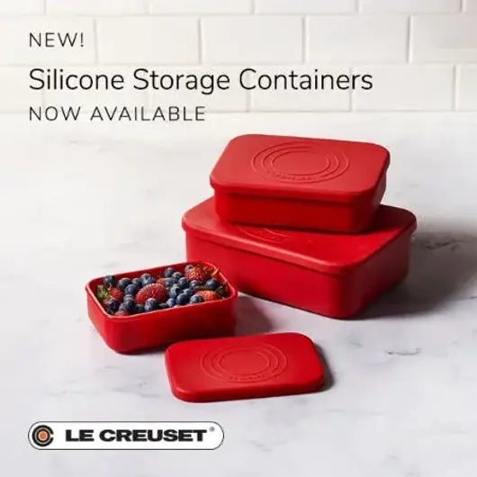 New Silicone Storage Containers available at all participating U.S. Le Creuset Outlets, while supplies last.