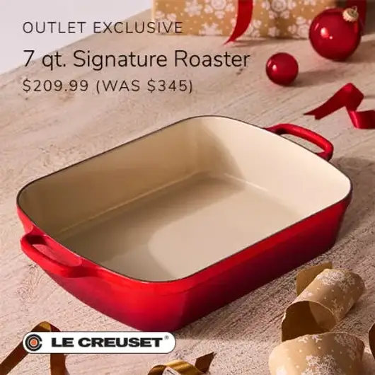 7 qt. Signature Roaster savings valid October 1st – October 31st, 2025, at all participating U.S. Le Creuset Outlets. Savings cannot be combined with any other coupons or discounts, while supplies last.