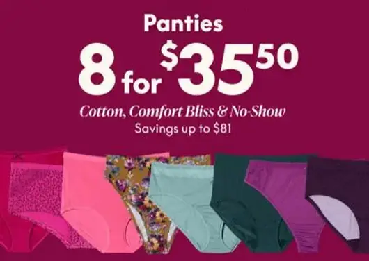 Get it quick! Shop in store and get panties 8 for $35.50.