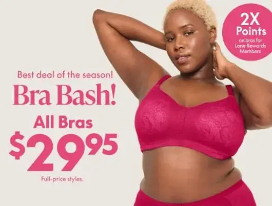 Valid in Lane Bryant stores from 10/17 through 10/18/2025. Valid only on as marked in-stock full price bras. Excludes early access & clearance bras. Not combinable with coupons or other discounts unless otherwise stated.